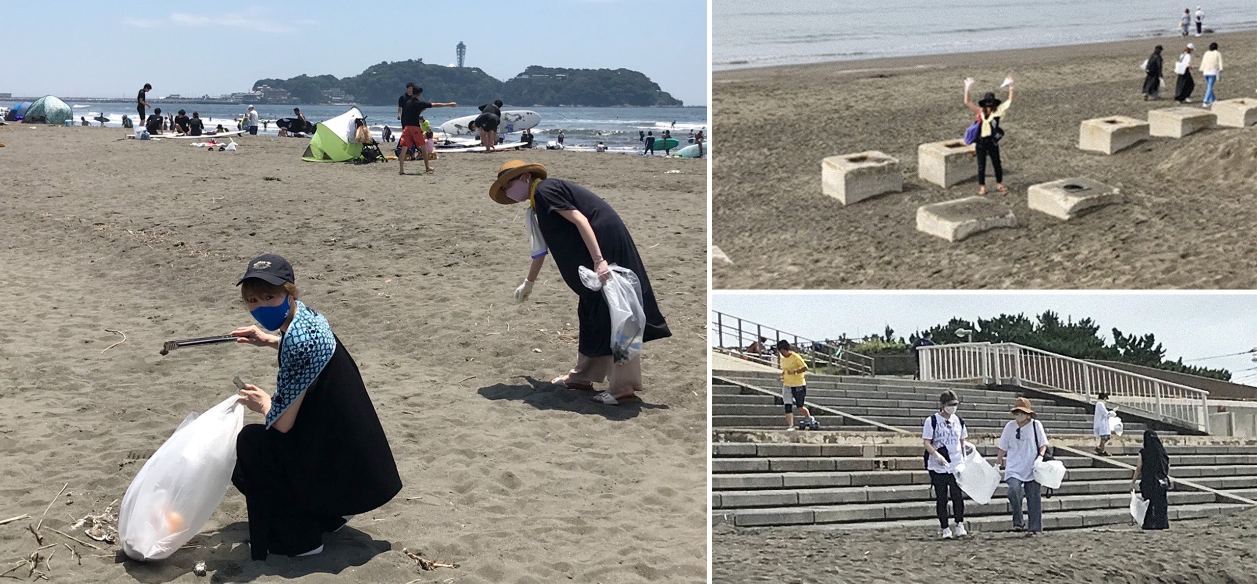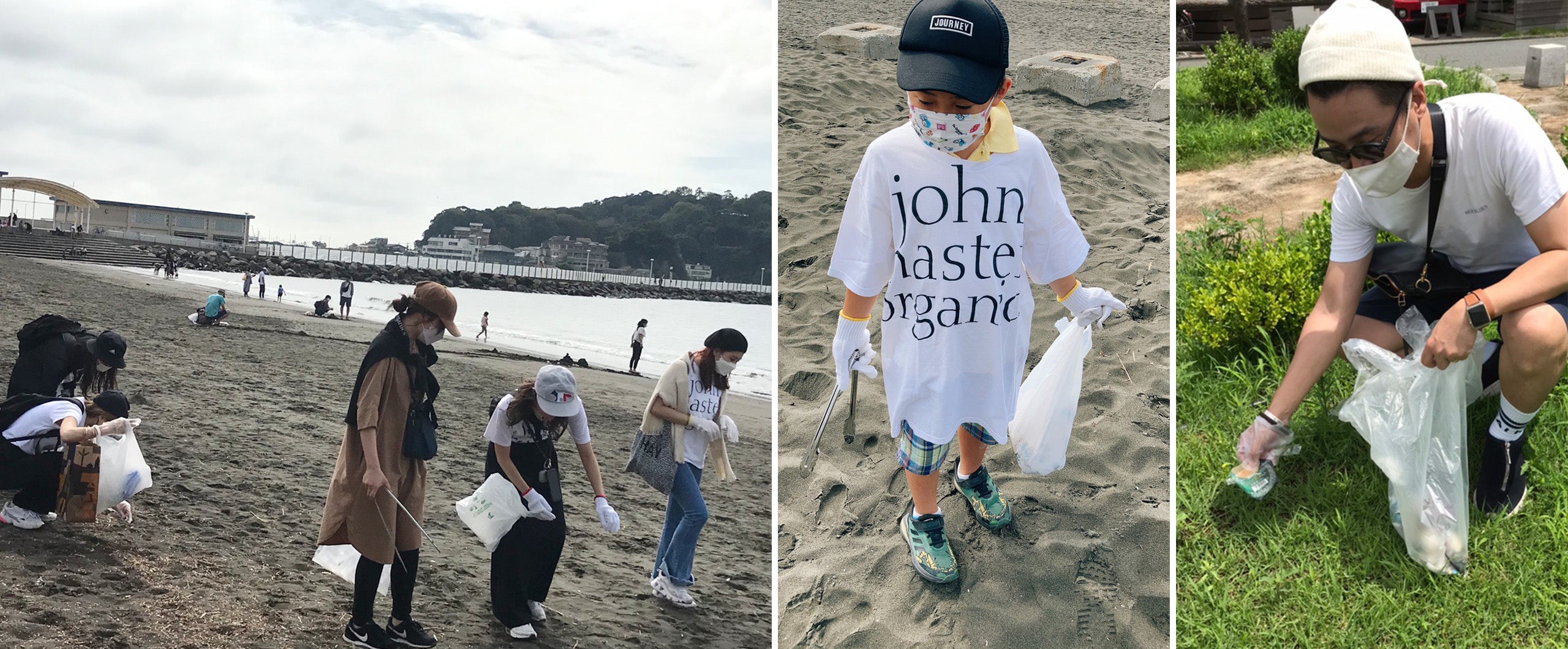 2回目のビーチクリーン活動は昨年秋、江の島。「今回は製品開発チームと店舗スタッフが参加。普段は直接関わることのない本社と店舗スタッフの交流が持てたことも嬉しく思います。ビーチに遊びに来ていた方からごみ拾いに参加したいと声を掛けていただいたとの報告もありブランドのみにとどまらない活動にできればと思います」