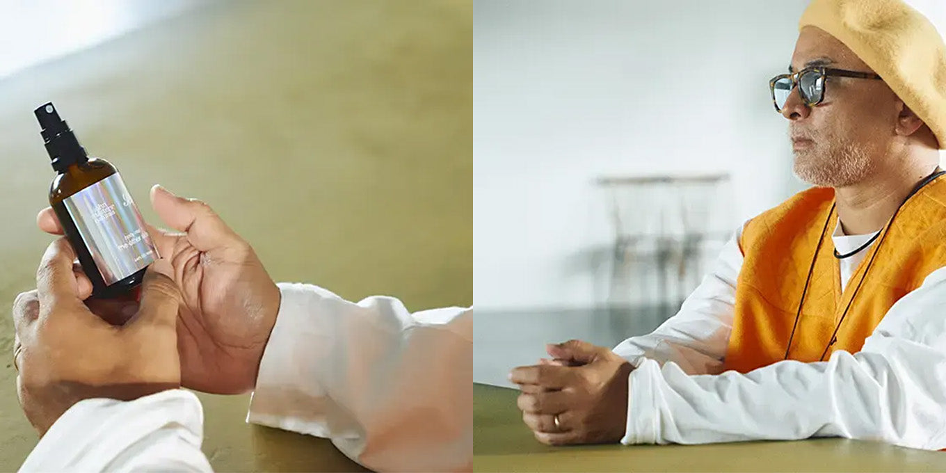 今回のホリデー限定フレグランスは、ジョンマスターオーガニックさん特有のブレンドに、僕の好きなパチョリなどのスパイシーなハーブをプラス。ユニセックスでドライな雰囲気に仕上がり、とても気に入っています。慌ただしい日常から、反対側にある静かな世界「the other side」へと誘うような、心落ち着く香りです。香りのひと吹きで、一瞬にして別の世界へ旅に出た気分になってもらえたらと。瞑想するときに使うのもいいし、仕事中の気分転換にもいいです。実際の旅に持っていくのもおすすめ。ホテルの部屋や移動の車が、リラックスできる心地よい空間になると思います。