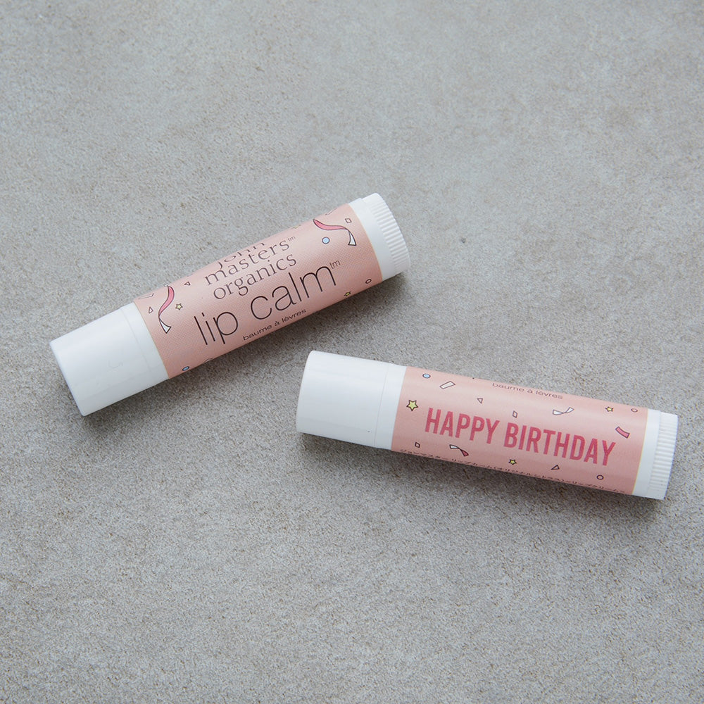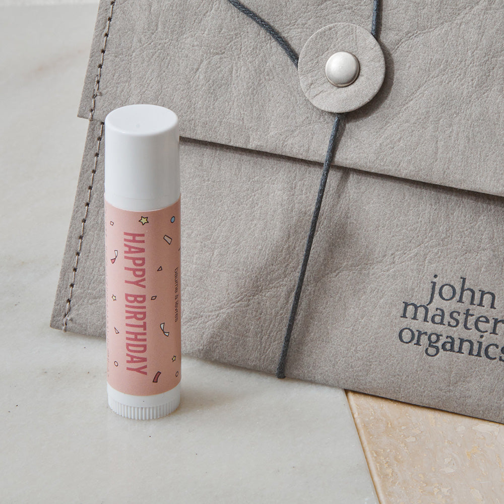 「HAPPY BIRTHDAY」のメッセージがデザインされた限定ラベルのリップクリームのギフトセット。爽やかなオリジナルシトラスの香りのリップは、ジェンダーレスに使える定番人気のアイテムです。誕生日のお祝いにおすすめ。
