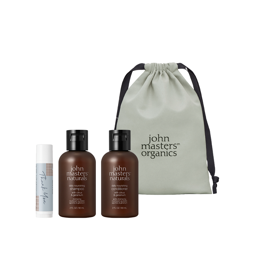 ベーシックケアのシャンプー&コンディショナーのミニサイズとセットにいたしました。