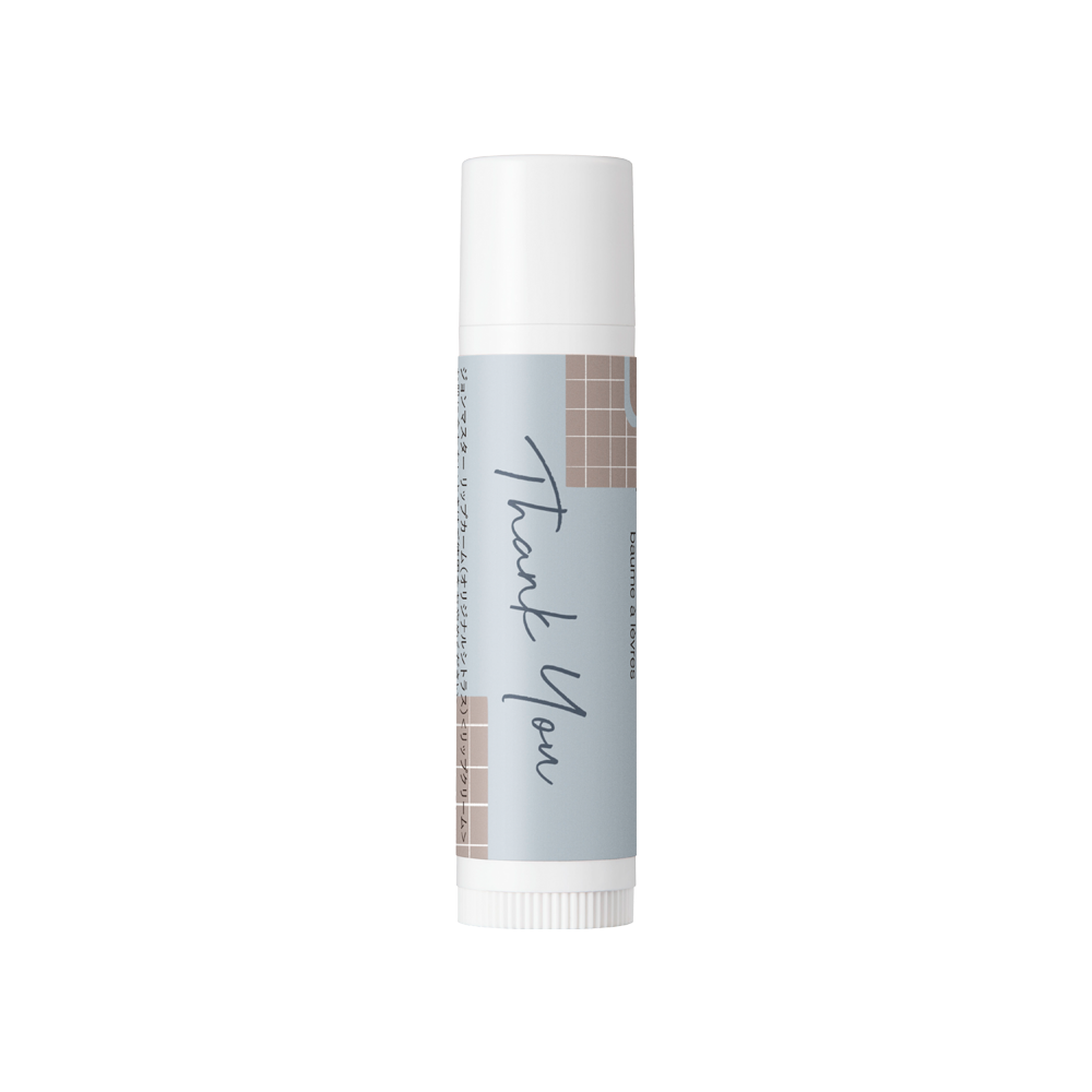「THANK YOU」のメッセージがデザインされた限定ラベルのリップクリームのギフトセット。