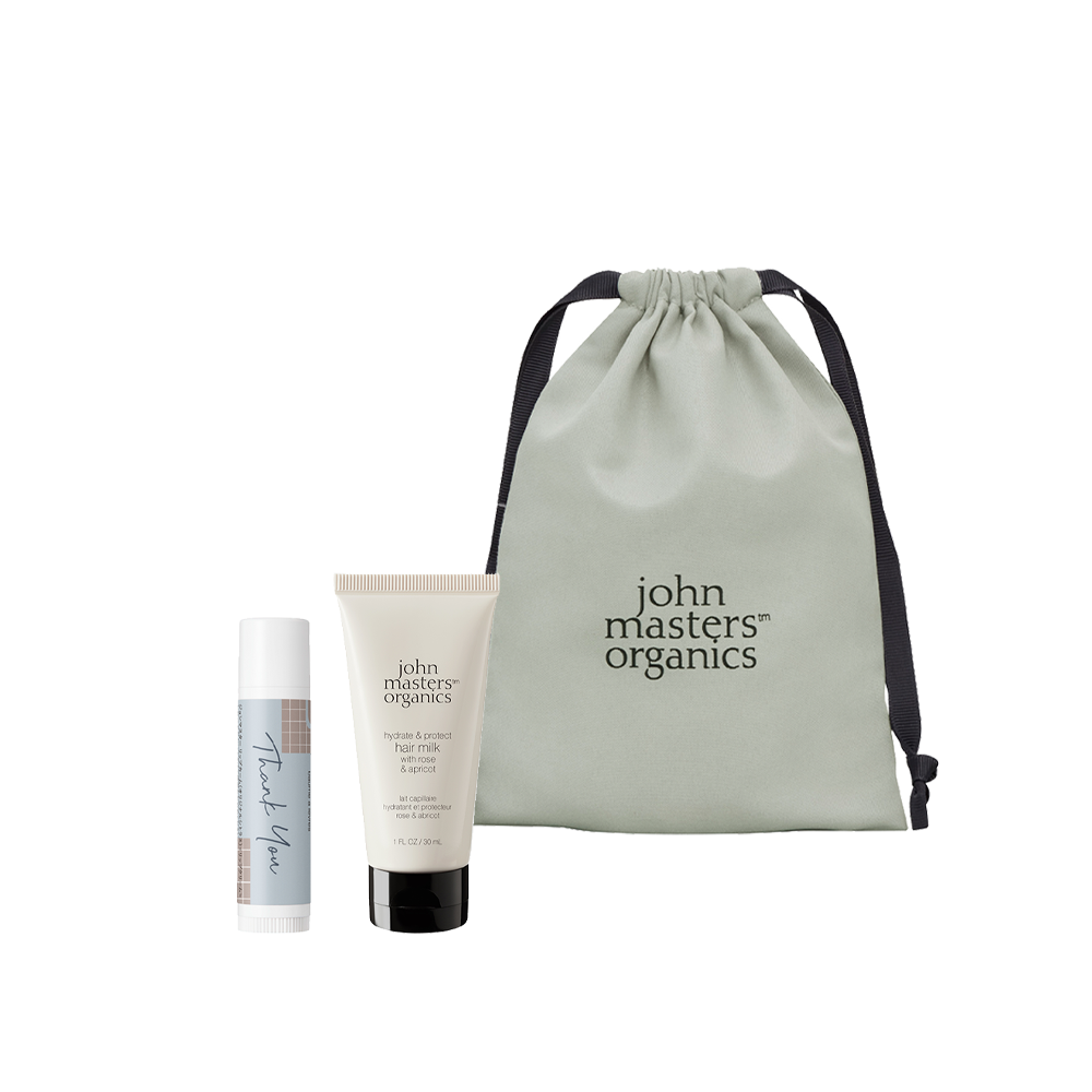 カジュアルなイラストに「Thank you」のメッセージを入れた限定ラベルのリップギフト。リップカームとローズが香るヘアミルクのミニサイズをセットにいたしました。お友達や両親など、日頃お世話になってる方へのギフトにぴったりです。