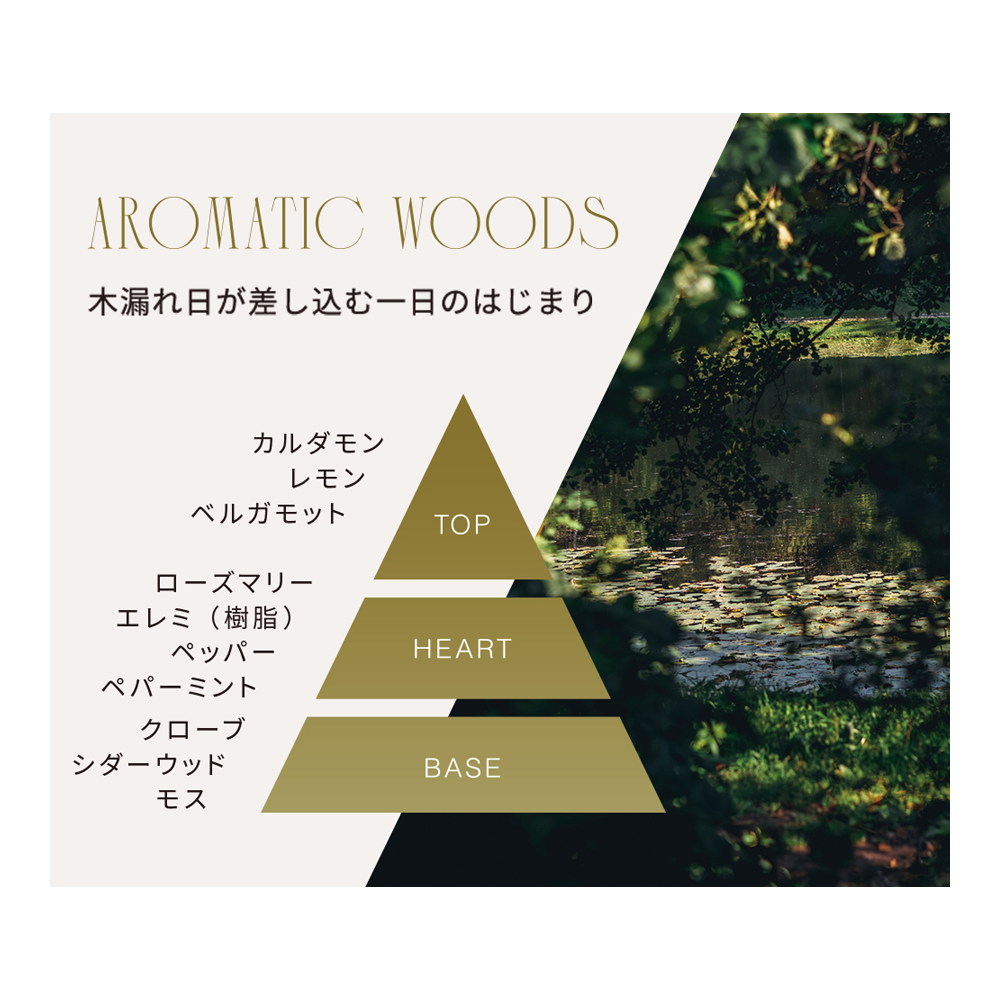 肌や髪にマルチに使えるフレグランスオイル。浸透性*1の高い発酵アルガンオイル(プセウドジマエピコラ/アルガニアスピノサ核油発酵液)に、肌をやわらげるオリーブ果実油やヒマシ油などをバランスよく配合。瞬時に肌になじみ、さらりとした感触で肌をしっとり保湿するドライオイル*2です。ショウガ根油やローズマリー葉油、潤いを与えるヒマシ油やアーモンド油を配合。乾燥感をやわらげ、透明感*3と潤いある肌へ導きます。*1 角質層まで*2 全成分中に水を含まない、肌なじみのよいオイル製品のこと*3 肌が潤いキメが整うこと【アロマティックウッズの香り】ハーバルとウッディ、澄んだ爽やかさの調和。