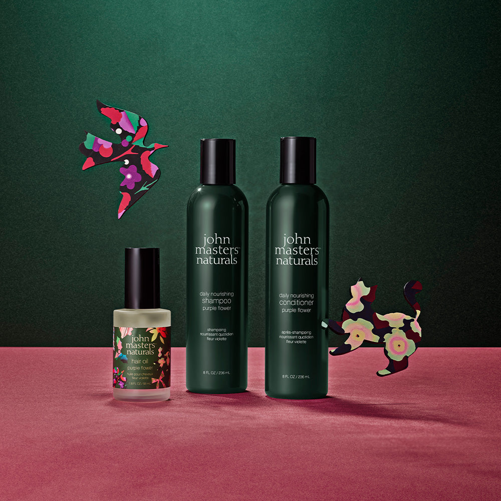 高保湿ながらライトな使用感で軽やかに潤うフレグランスヘアオイル、パープルフラワーの香り。ヒマワリ種子油やホホバ種子油、マルラオイル(スクレロカリアビレア種子油)などのなじみのよい植物オイルを配合。ツヤと潤いのあるサラサラな髪へと導きます。また、植物由来のγ-ドコサラクトンや海浜植物由来のシーラベンダーエキス(リモニウムゲルベリエキス)が、ドライヤーの熱や静電気などによる乾燥ダメージから、髪を潤いで守ります。ほのかな甘さのフローラルノート。