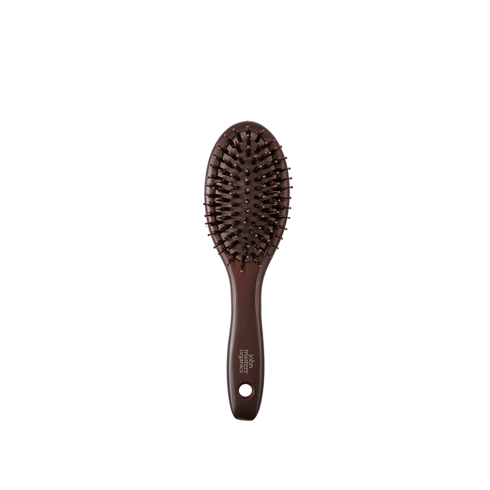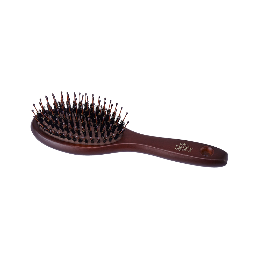 トルマリン配合のイオン毛と、猪毛の混合でできたブラシのミニサイズが登場!やさしくブラッシングするだけでキューティクルを傷つけることなく整え、寝起きのもつれやすい髪も解消。また、毛が太く、広がりの気になる髪質をなめらかでまとまりやすい髪に仕上げ、サラサラな輝くツヤを与えます。竹製の持ちやすい太さとフィット感のハンドルで、効果的なスタイリングを可能にします。