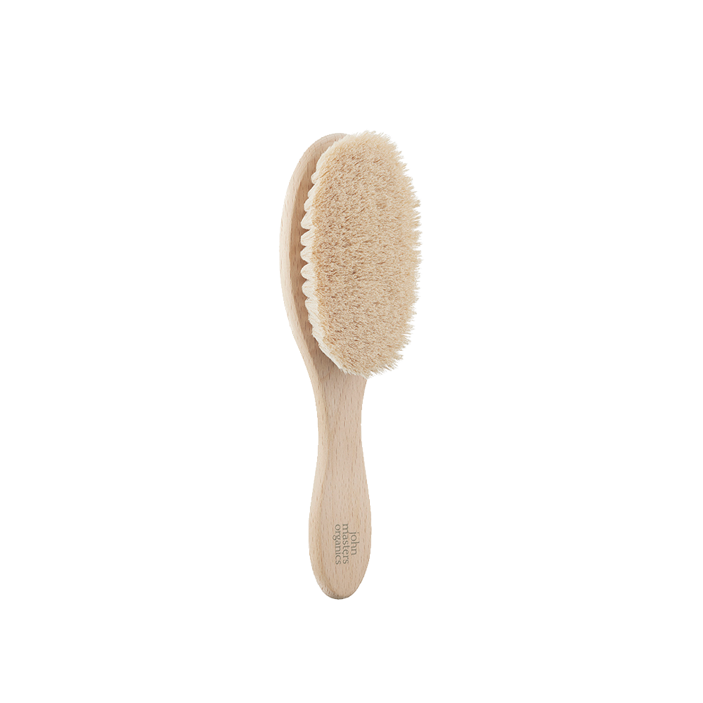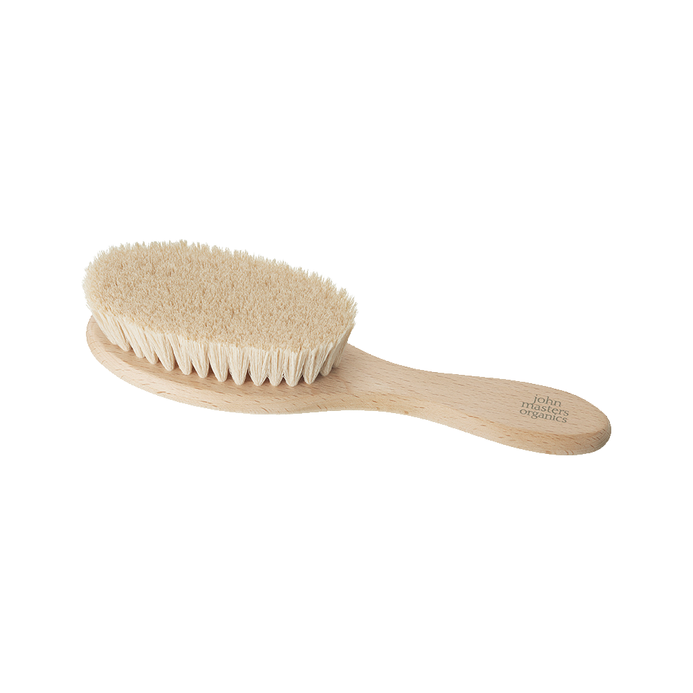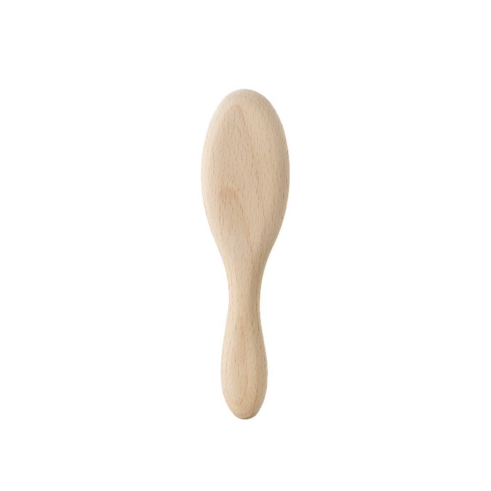 トウモロコシ由来のポリエステルで作られた生分解性のある人工毛と、なめらかなブナの天然木でできたブラシ。頭をなでるようなやさしい感触で型くずれもしにくい、毎日のブラッシングにぴったりのブラシです。天然木は赤ちゃんへの使用を配慮した無塗装仕上げ。